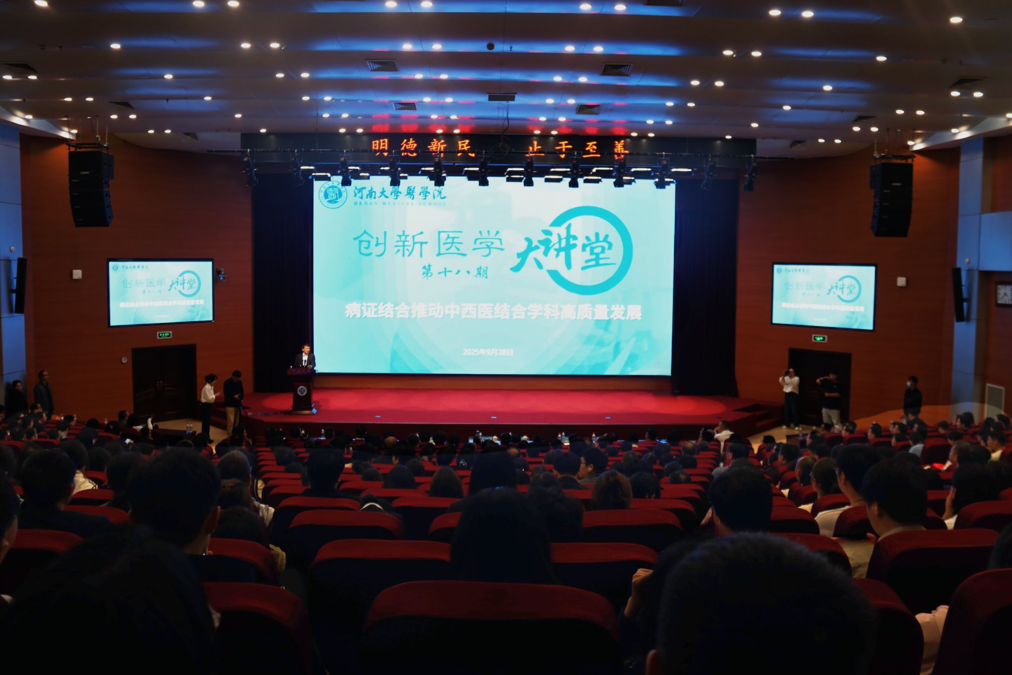 9月28日下午,河南大学创新医学大讲堂第18期活动在金明校区图书馆一楼报告厅举行。上海中医药大学校长季光教授应邀为我校500余名来自医学院及所属各单位的临床医生、专任教师、管理骨干以及研究生代表等作题为《病证结合理论引领一流中西医结合学科建设》的讲座,河南中医药大学校长王耀献教授莅临本次讲堂。讲堂由校党委书记季波主持。