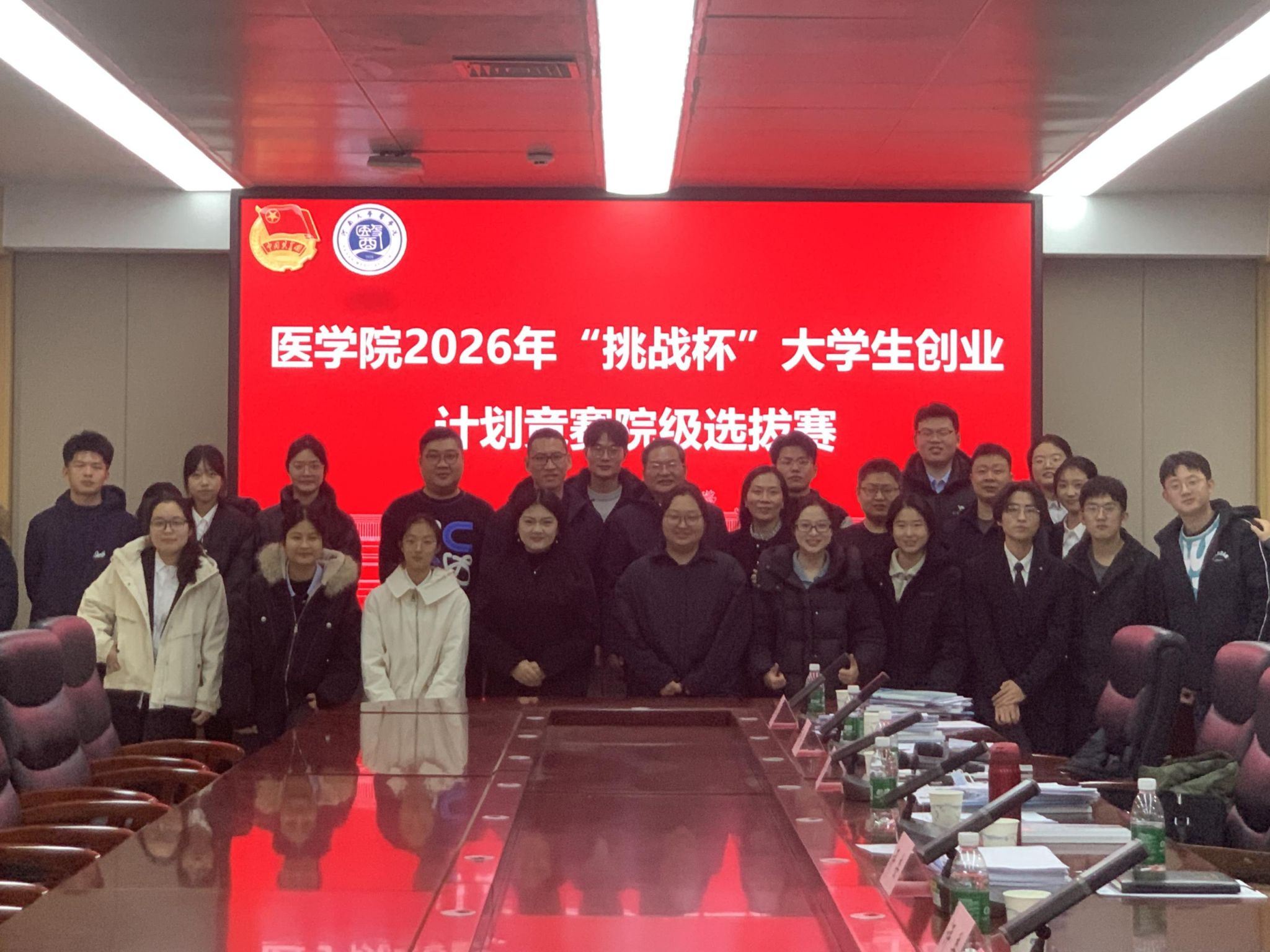 创新无止境,挑战正当时。为进一步推动“大众创业、万众创新”,将创新创业教育融入人才培养全过程,培育医学生“敢闯会创”的奋斗精神,12月4日下午,医学院在曾宪梓楼二楼报告厅成功举办2026年“挑战杯”大学生创业计划竞赛学院选拔赛。医学院副院长谢松强,基础医学院魏寅祥,纳米科学与材料工程学院钟永,校团委社会实践与科技创新部部长丁宇航,校就业创业指导中心熊小波应邀担任评委。医学院学生工作组组长、校医院党总支书记、院长陈丹丹观摩赛事。比赛由医学院团委负责人陆龙龙主持。