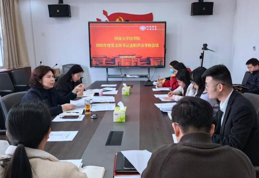 2月4日下午,医学院2025年度党支部书记抓基层党建述职评议考核会议在金明校区行政楼536会议室。医学院党委常务副书记王莹,学生工作组组长、校医院党总支书记、院长陈丹丹出席会议,医学院各基层党支部书记及相关职能部门工作人员参会。会议由陈丹丹主持。